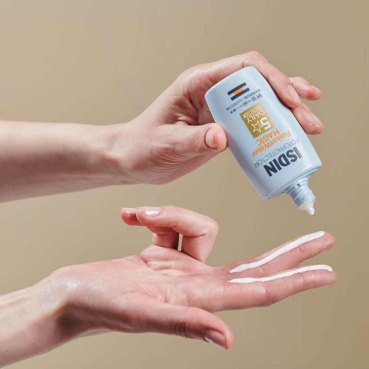 ضدآفتاب فیوژن واتر مجیک ایزدین یکی از انواع ضد آفتاب های برند ایزدین است که بافتی فوق العاده سبک و زود جذب روی پوست داشته و برای استفاده روزانه ایده آل است. این ضد آفتاب علاوه بر محافظت بالا از پوست در برابر اشعه های مضر نور خورشید با SPF50، پوست را رطوبت رسانی کرده، چربی آن را کنترل میکند و دارای خاصیت آنتی اکسیدانی است. ضد افتاب ایزدین مجیک برای پوستهای چرب ایده آل است، فاقد روغنهای معدنی است، جلوهای کاملا مات روی پوست دارد و احساس چربی و سنگینی ایجاد نمیکند.